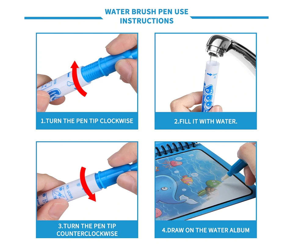 -Добавьте воду в ручку, затем нарисуйте волшебную карту. Нет чернил и химикатов.