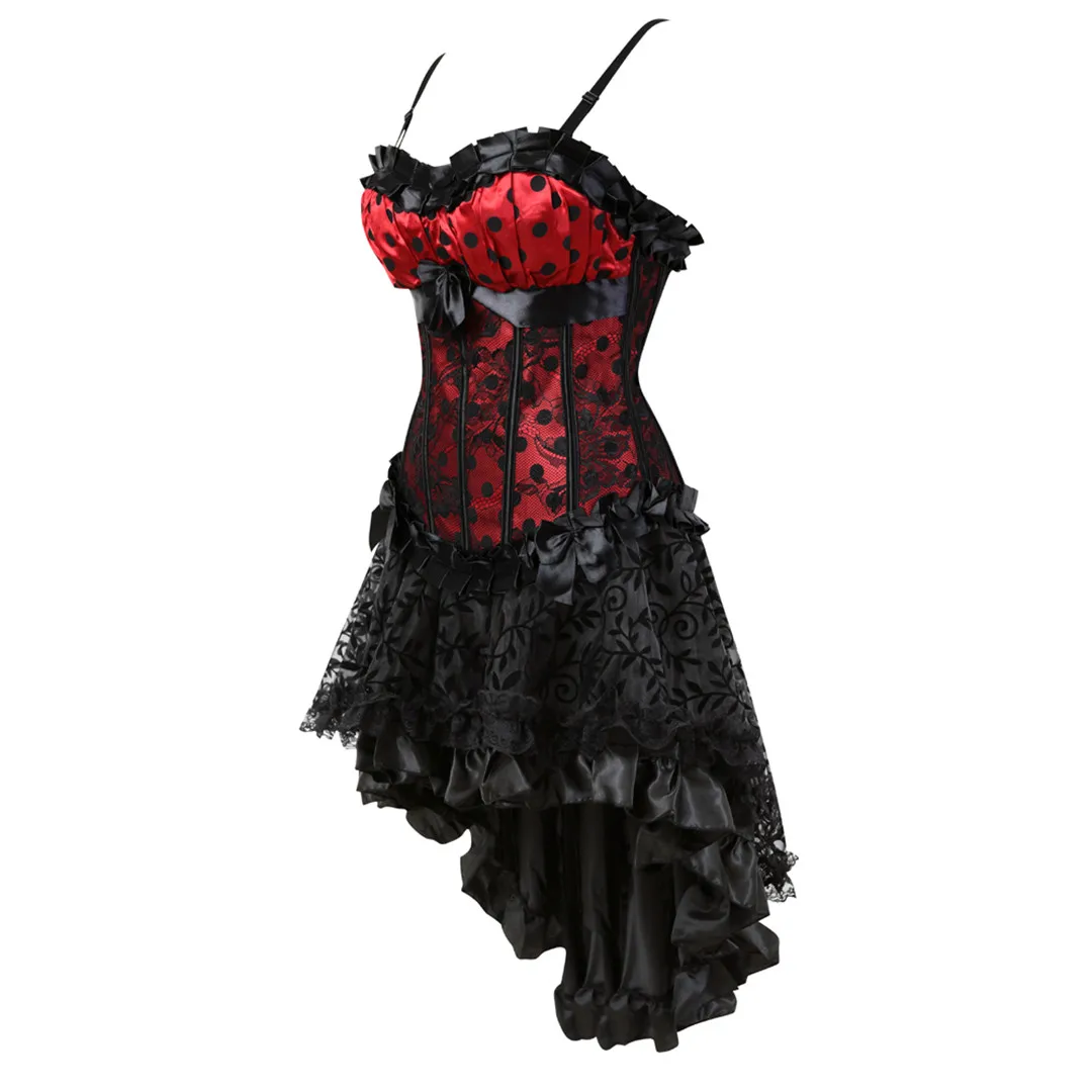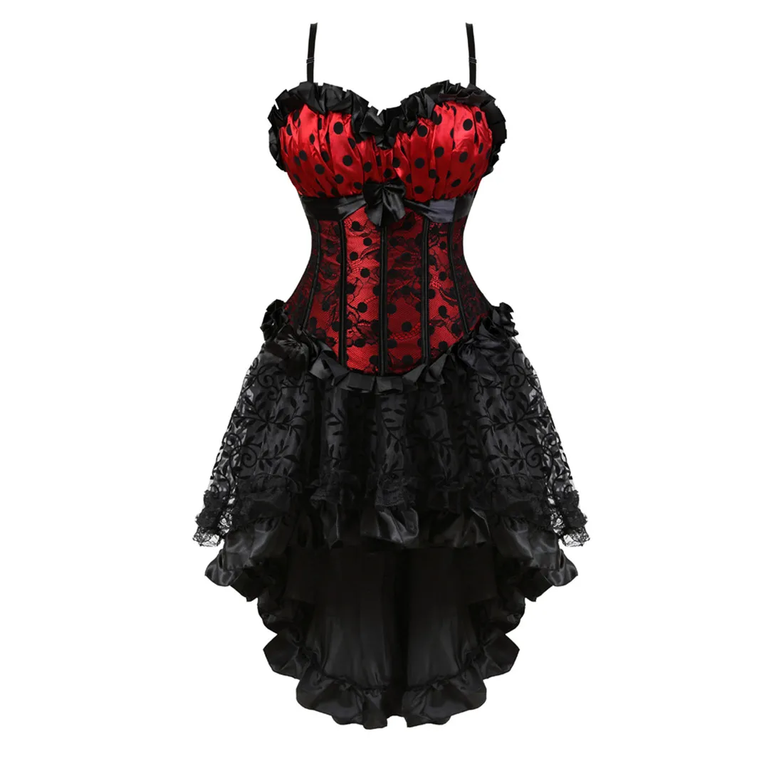 Женское сексуальное кружевное винтажное платье-корсет с готическим принтом в горошек, женское Бюстье с кружевной юбкой