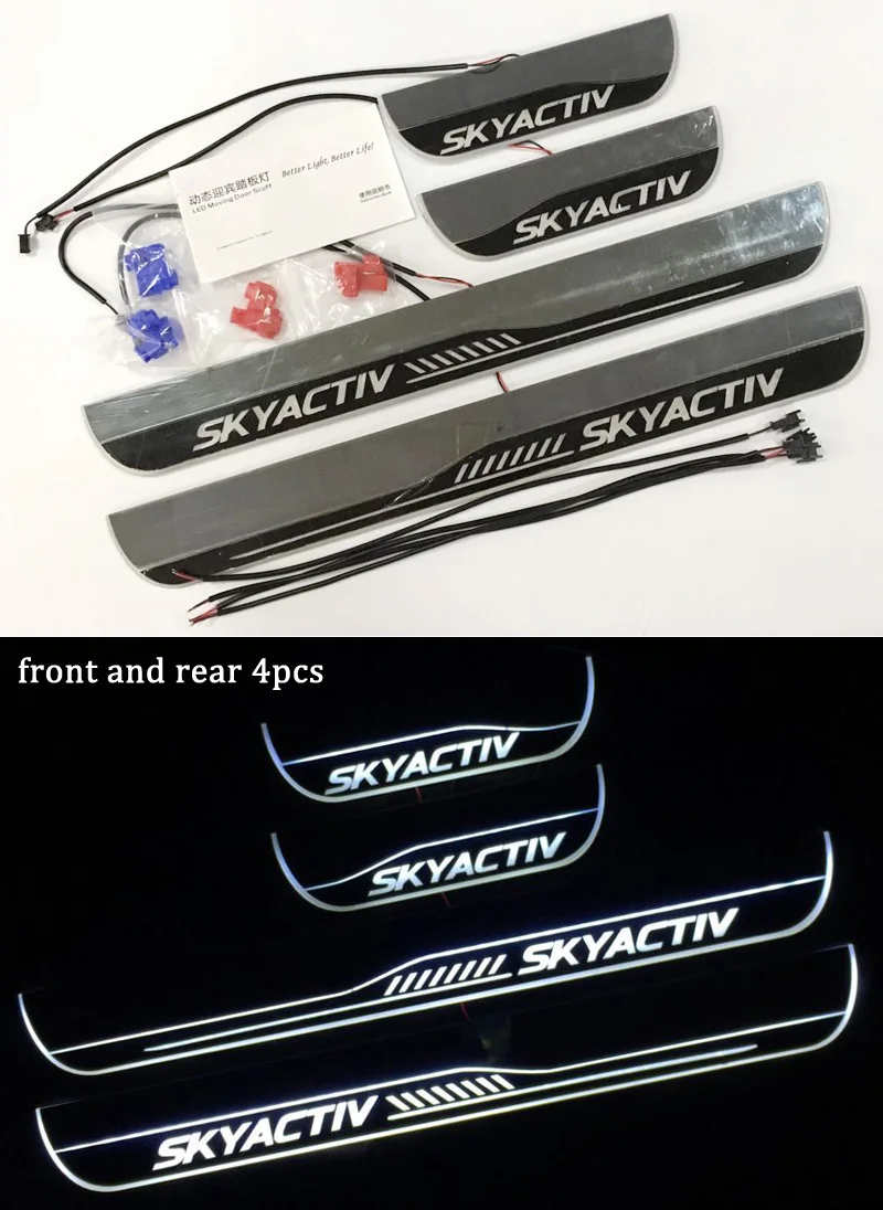 Светодиодный порог, Накладка на порог, защитная Накладка на порог двери для Mazda 2, 3, 6 искусственных задних предметов, Фотографическая наклейка на автомобиль с динамической педалью