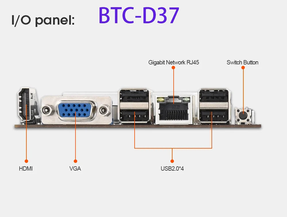 Особенности:1,8 * PCIE 16X слот для видеокарт, 55 мм интервал.2. Высокая производительность вычислений, на 10% выше, чем Материнские платы того же уровня.3. Оснащен Sodimm DDR3 слотом памяти, 16 * 6PIN PCIE X16 разъем питания, значительно повышает производительность материнской платы.4. Конденсатор стабилизации напряжения может обеспечить стабильное напряжение для вашего оборудования электропитания.5. Он может обеспечить тихую производительность, низкое энергопотребление, меньшее тепловыделение, энергосбережение и безопасное использование.Спецификация:Модель: BTC-D37Память: 1 * DDR3 Sodimm слот, поддержка 1066/1333/1600 МГцХранение: 1 * SATA3.0 + 1 * SATA2.0 + 1 * m SATA2.0USB: 4 * USB2.0Сетевой порт: 1 * интегрированный чипсет ForGigabit сетевой порт RJ45Расширяемый порт: 8 * PCIE 16X,16*6pin PCIE X16 разъем питания, HDMI-совместимый + VGAУпаковочный лист:1 * материнская плата Miner (металлический чехол не входит в комплект)