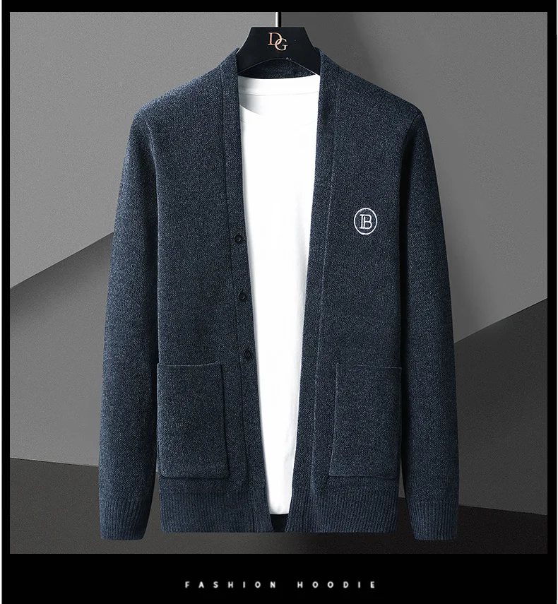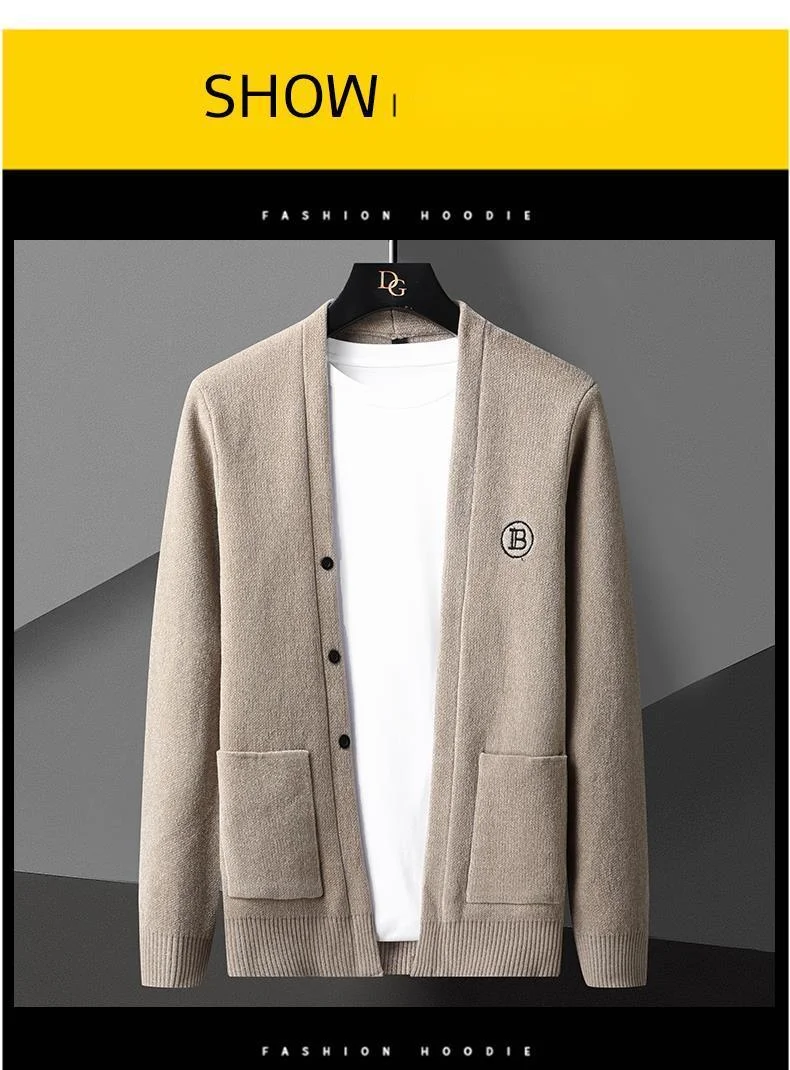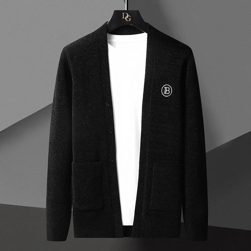 Кардиган мужской вязаный с большими лацканами, брендовый Модный Рос...