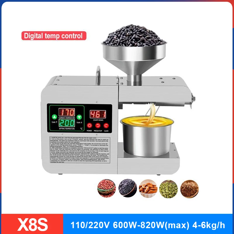 Новинка Масляный Пресс X8S 820 Вт пресс для масла из нержавеющей ст...