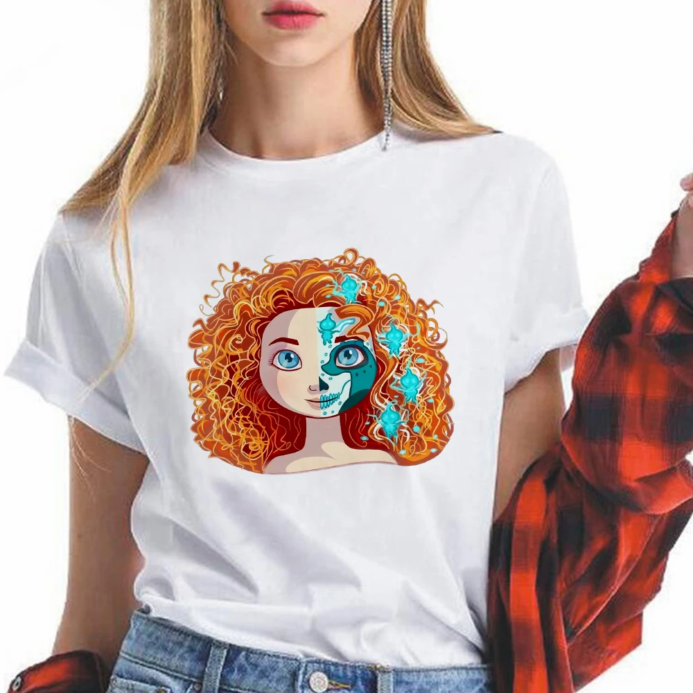 Модные женские футболки с изображением Дня мертвых черепов из сериала принцесс Merida, удобные женские футболки в стиле Харадзюку