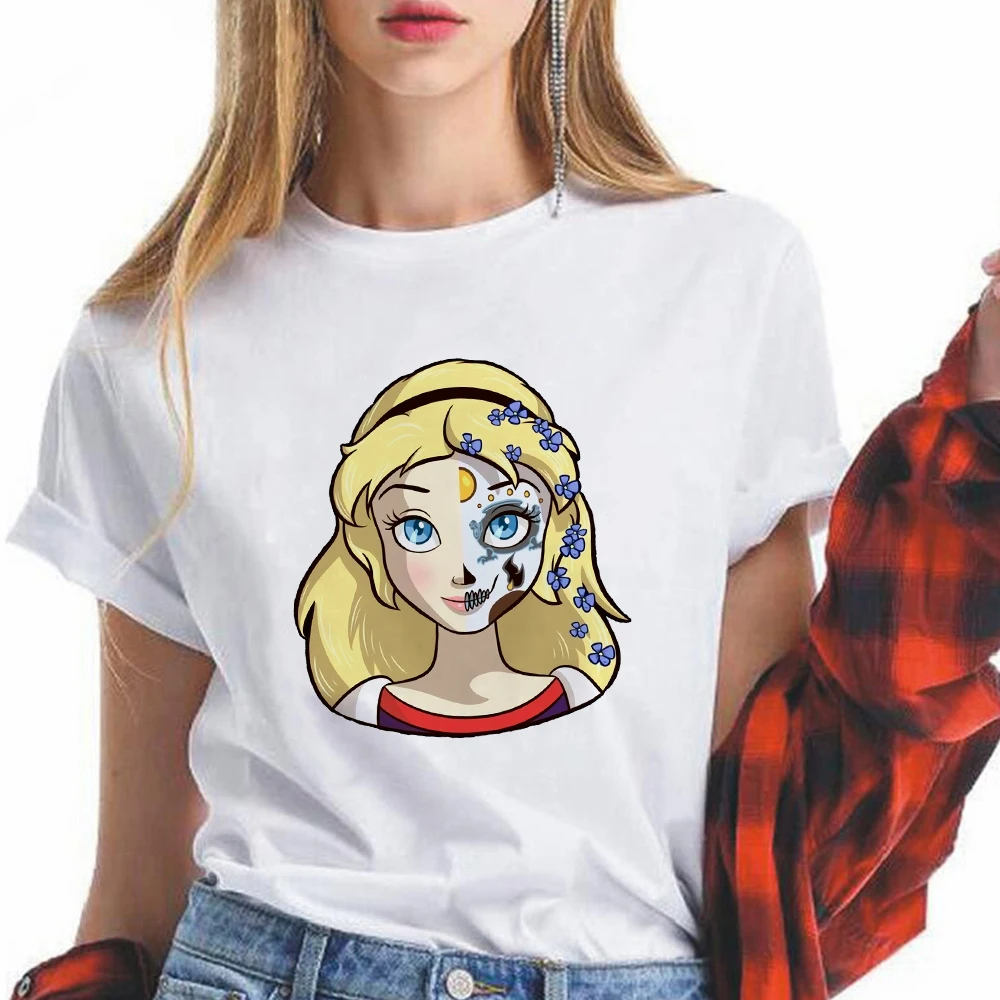 Женские футболки Disney Day Of The Dead, серия принцесс с черепом, ...