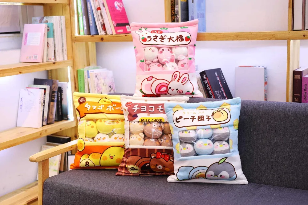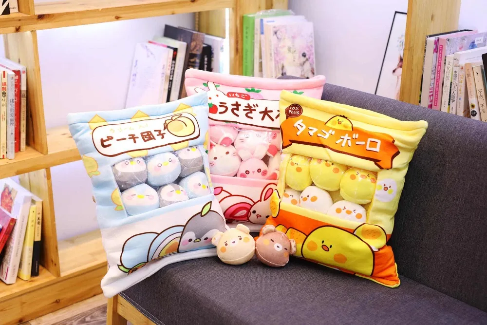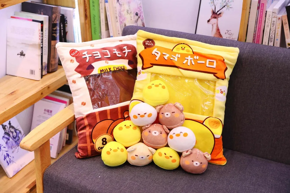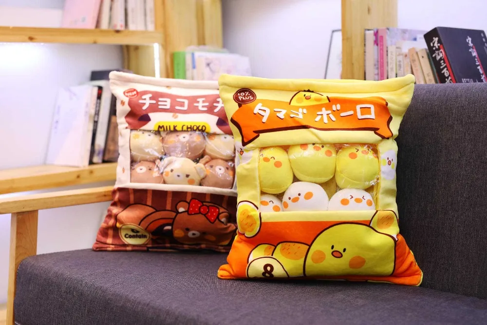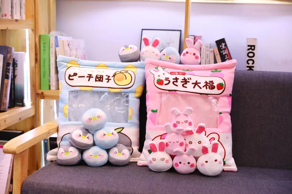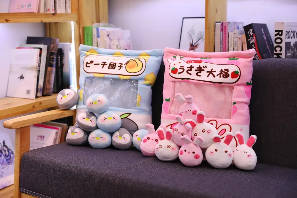 Пудинговый мешок, игрушка для еды, миниатюрные шарики с животными, желтый цыпленок, медведь, пингвин, розовый кролик, 8 шт., Декоративная Подушка на молнии, подушка для девочек