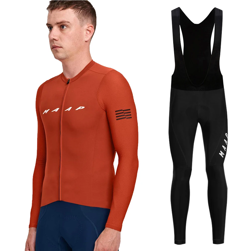 Мужской весенне-осенний комплект MAAP из длинного Джерси для велоспорта с нагрудником и брюками, оборудование для велоспорта, быстросохнущая веломайка, мужской комплект для велоспорта