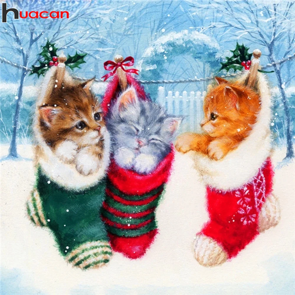 Алмазная живопись Huacan 5d сделай сам, рождественские носки, домашний декор, алмазная вышивка, мозаика, животное, вышивка крестиком, наклейка на стену