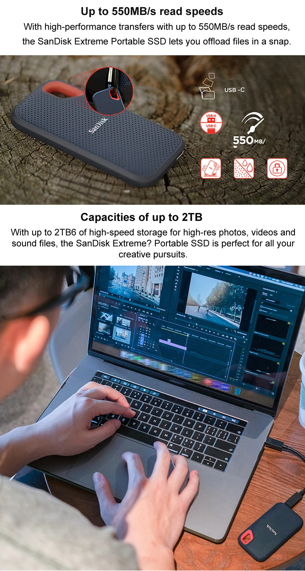 Внешний жесткий диск SanDisk на ТБ, внешний Ssd на 2 ТБ, флеш-накоп...