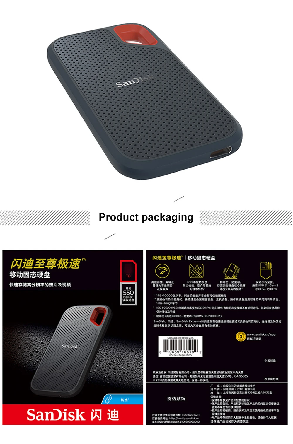 Портативный SSD-накопитель SanDisk 2 ТБ Type-c 1 ТБ 500 Гб 550 м вн...