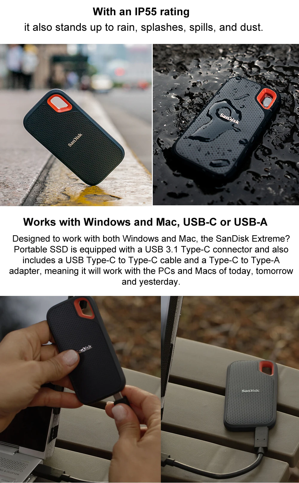 SanDisk SSD USB 3,1 Type C 1 ТБ, внешний твердотельный диск 500 Гбс...