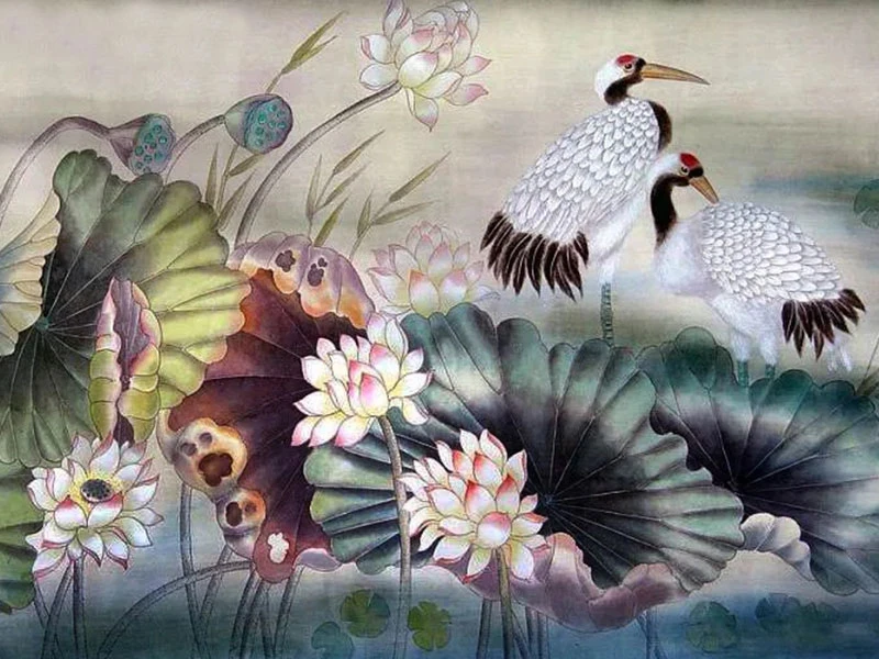 Алмазная живопись, лотос и белый журавль 5D, алмазная вышивка своими руками, полная круглая и квадратная вышивка, Алмазная мозаика, вышивка крестиком, домашний декор