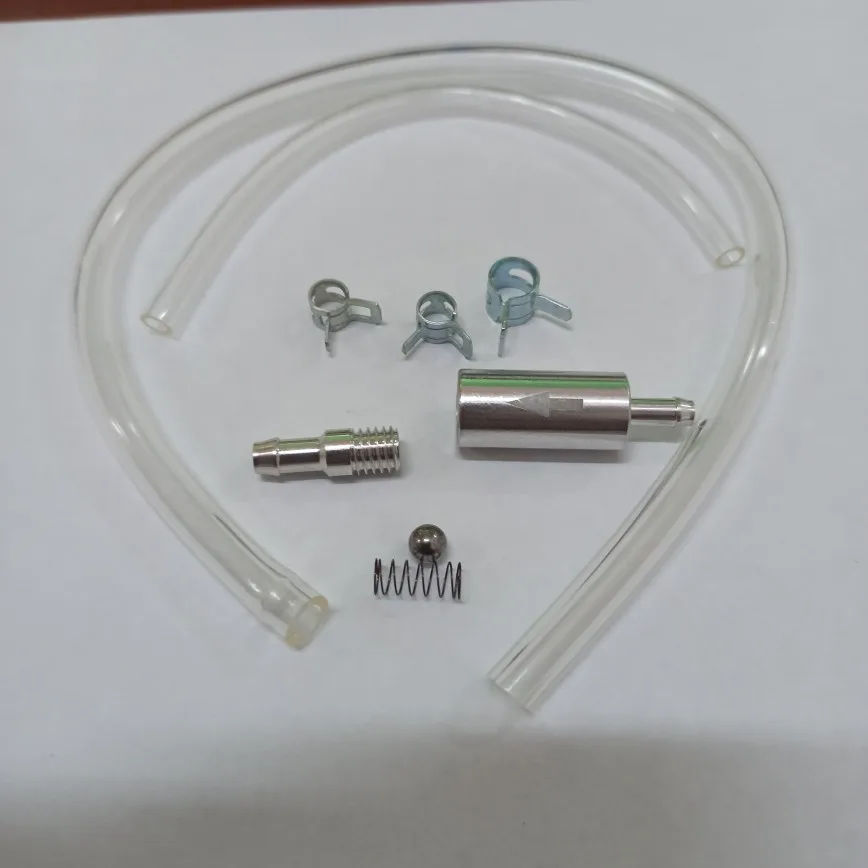 Внутри шарик с пружиной в качестве клапана, впускной шланг выглядит тонковато