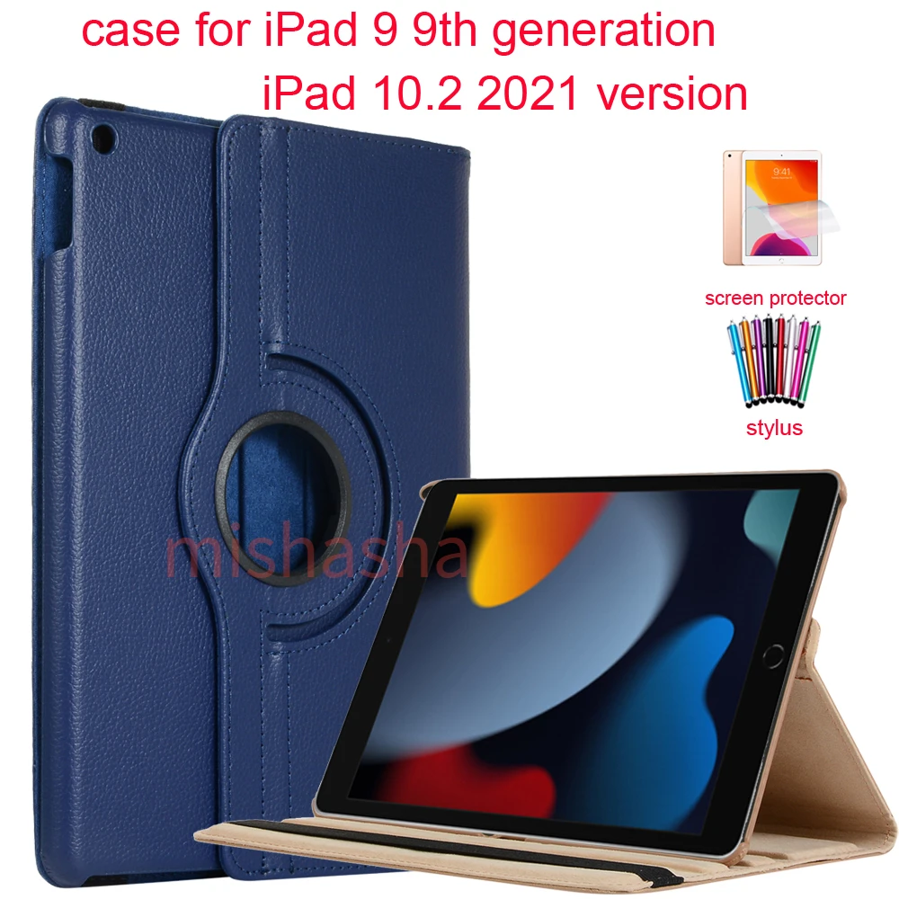 360 Вращающийся флип-чехол из искусственной кожи для Apple iPad 9th поколения 10,2 ''2021, чехол-подставка, смарт-чехол A2603 A2604 с функцией автоматического пробуждения