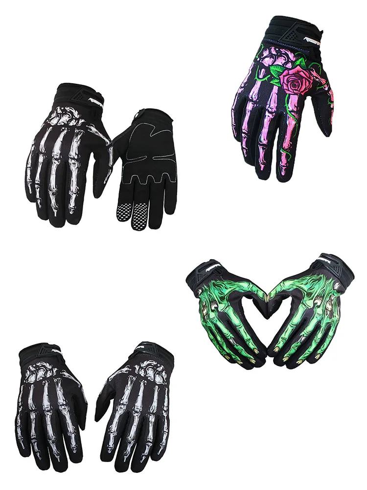Перчатки с черепом на весь палец, с рисунком скелета, для велоспорт...