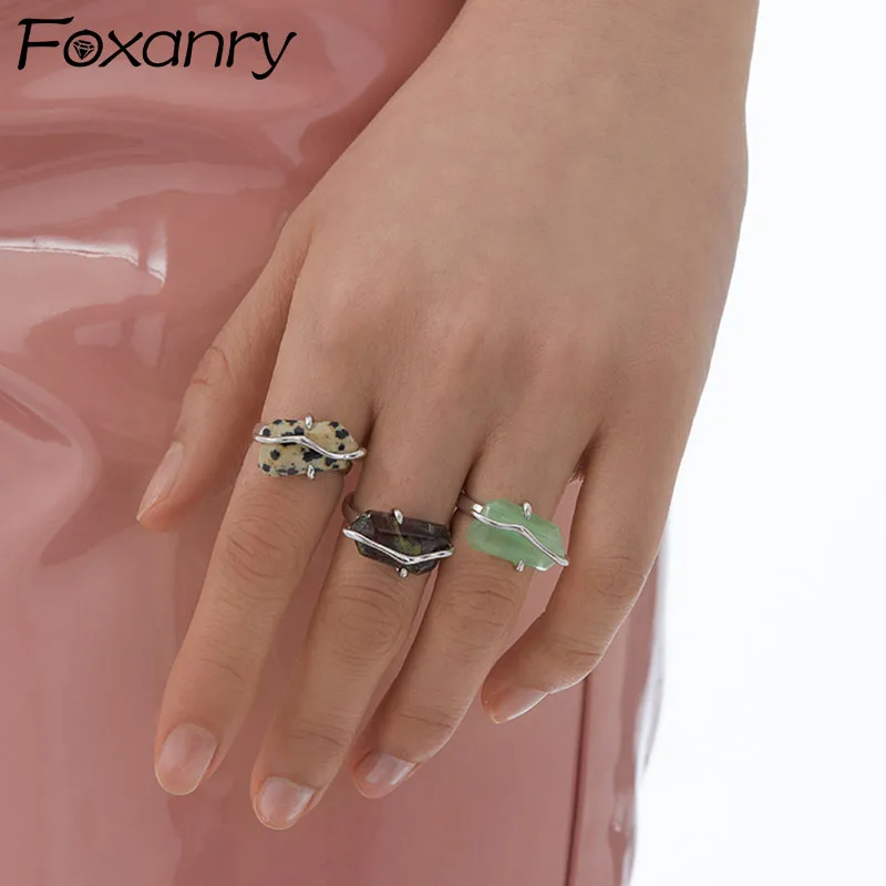 Женские открытые кольца FOXANRY 925, модные элегантные разноцветные кольца с камнями, ювелирные изделия для вечеринок, подарки на день рождения