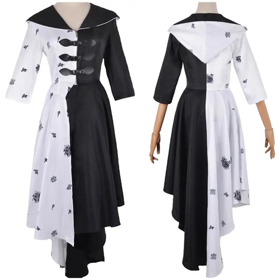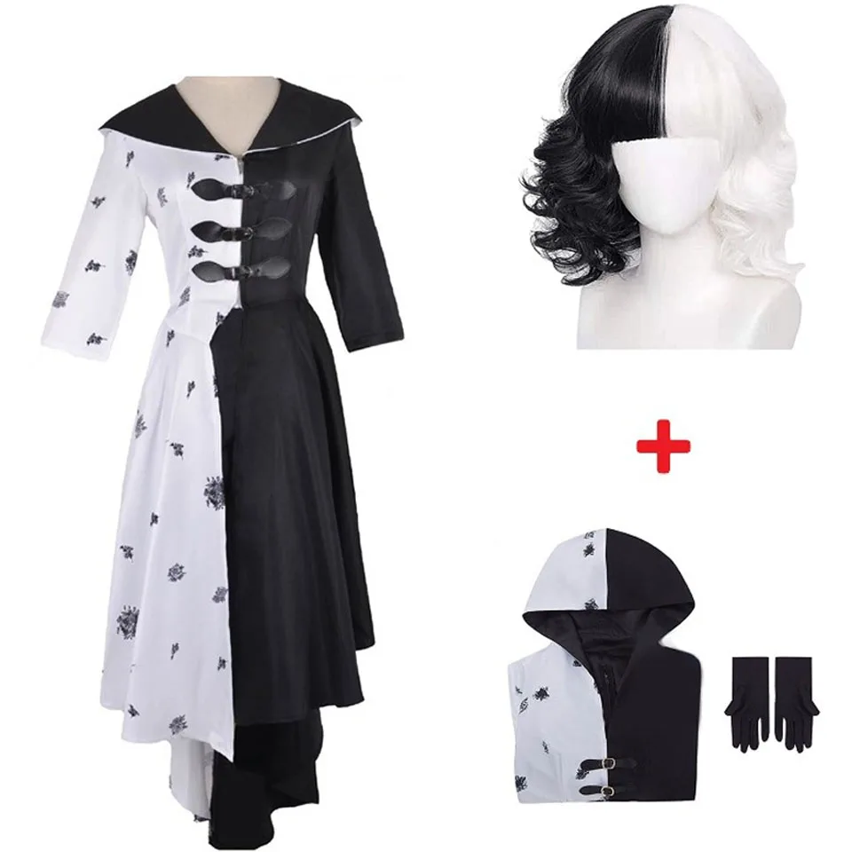 Косплей-костюм для взрослых Cruella De Vil на Хэллоуин, наряды для Хэллоуина вечерние вечеринки, карнавала, костюм для черно-белых женщин и девочек