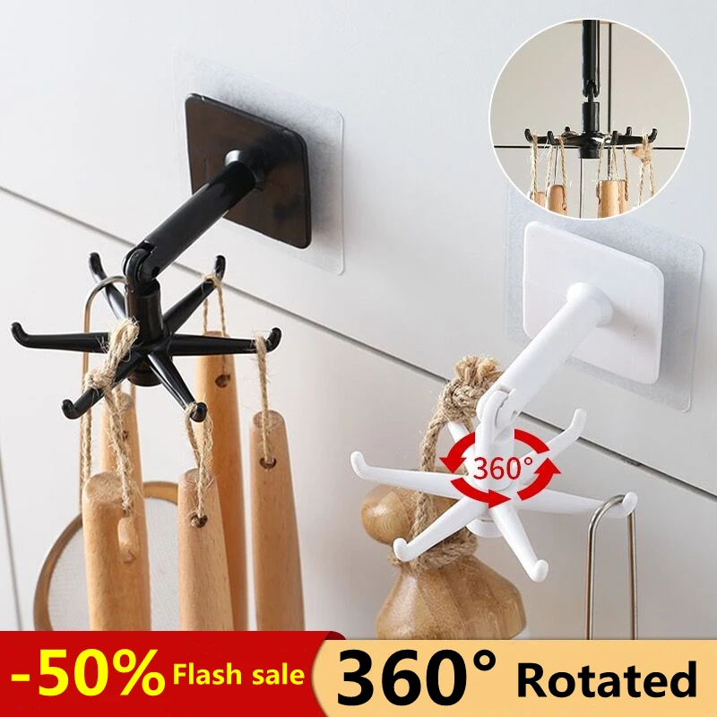 360 градусов вращающиеся кухонные настенные крючки самоклеющиеся инструменты для хранения Брелок универсальная стойка Сумочка Галстуки сумка вешалка