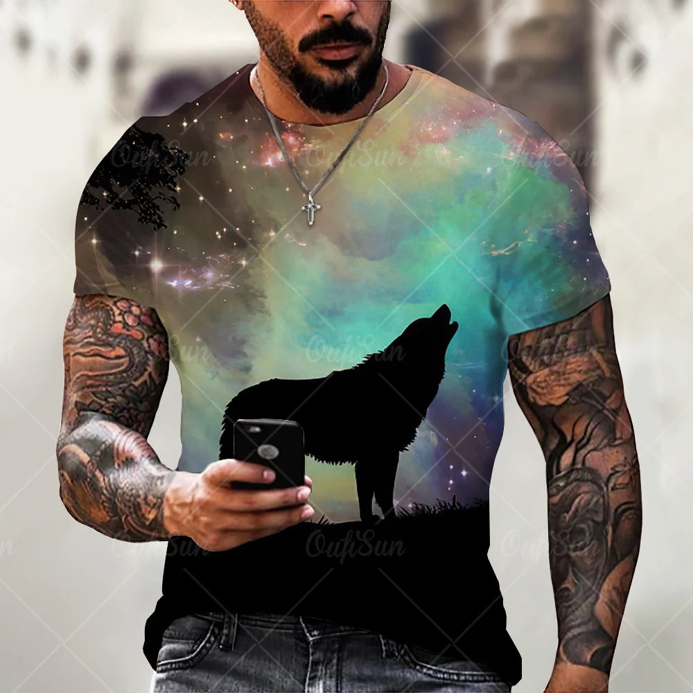 Летняя модная мужская футболка с 3D-принтом волка, трендовая Повсед...