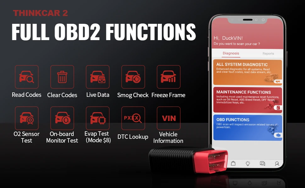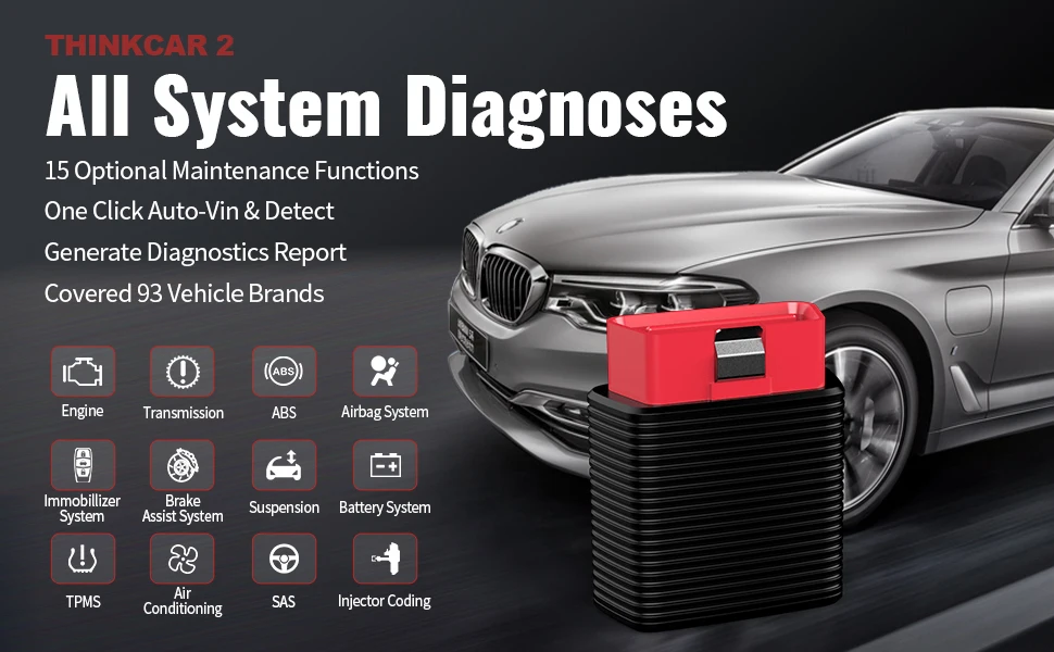 Диагностический сканер THINKCAR 2, универсальный диагностический прибор с поддержкой Bluetooth, obd 2, для чтения кодов
