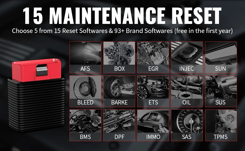 Этот сканер OBD2 специально разработан, чтобы обеспечить вам быстрый доступ к системам транспортных средств для различных плановых услуг и обслуживания. Есть некоторые часто используемые специальные службы сброса перечислены для вашей справки:1. Обслуживание сброса масляной лампы: позволяет выполнить сброс для нового расчета системы жизнедеятельности моторного масла после изменения масла.2. Обслуживание EPB: важно в обслуживании безопасности и эффективности электронной тормозной системы.3. Батарея летучей мыши: позволяет сканировать инструмент для оценки состояния заряда батареи, контролировать ток замыкания, зарегистрировать замену батареи и активировать остальное состояние транспортного средства.4. Обслуживание DPF: специально работает для дизельной системы фильтров твердых частиц с регенерацией DPF, замена компонентов DPF после замены блока управления двигателем.5. Обслуживание SAS: помогает очистить воспоминания о датчике угла поворота и играет важную роль в калибровке датчика угла поворота руля.6. Обслуживание TPMS: имеет смысл в отображении сенсорных идентификаторов из ECU транспортного средства, ввод TPMS сенсорных сменных идентификаторов и датчиков тестирования.7. Программирование ключей IMMO: уникальное Программирование автомобильных ключей и функция считывания ПИН-кода, оно в основном используется для отключения потерянных ключей транспортного средства и программирования нового сменного ключа fob.8.ABS кровотечение: ABS тормозное кровотечение, чтобы получить твердую тормозную колодку После истощения воздуха после ремонта ABS насосной системы9. Сброс солнечного крыши: память солнечного крыши, как правило, необходимо сбросить, когда батарея транспортного средства заменена или машина умирает10. Сброс подвески: попробуйте сброс электронной Подвески с системой массажа закройте все двери koeo flip через систему measage перейти к сбросу подвески или выключению11. Сброс коробки передач: процесс сброса передачи Адаптивное обучение DIY. Запуск автомобиля и вождение. Как только вы выполните эту процедуру, блок управления двигателем (ECU) и блок управления передачей (TCU) будут работать вместе, чтобы узнать, как Вы управляете, отслеживая ваш шаблон вождения. После того, как вы выполните этот метод программирования TCU / ECU привод автомобиля.12. Сброс фар AFS: «AFS» означает адаптивную переднюю систему освещения (ночью с би-ксеноновыми фарами), она поворачивается с обеих сторон, нажатие этой кнопки означает, что они не поворачиваются вперед и не поворачиваются, когда вы поворачиваете руль13. Кодирование инжектора: утечки инжекторов и некоторые мертвые инжекторы могут быть пропущены даже когда инжектор отключен. Другие проблемы с системой зажигания и механическими компонентами также могут не показывать потерю оборотов в минуту при выключении инжектора14. Приспособление дроссельной заслонки корпус дроссельной заслонки представляет собой трубу, содержащую поворотный плоский клапан (бабочка), который используется для контроля количества воздуха, входящего в двигатель. В автомобиле с электронным топливом Датчик положения дроссельной заслонки и датчик воздушного потока связываются с компьютером, который поставляет соответствующее количество топлива, необходимое для инжекторов. Необходимо повторно изучить положение датчика дроссельной засл