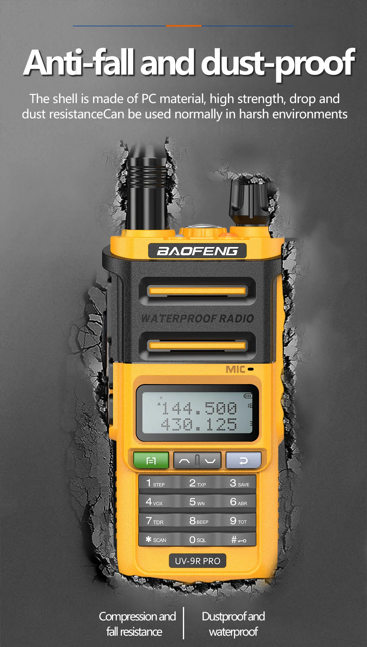 Портативная рация Baofeng UV-9R PRO IP68, Портативная радиостанция большой мощности, приемопередаточная радиосвязь, УКВ, улучшенная версия