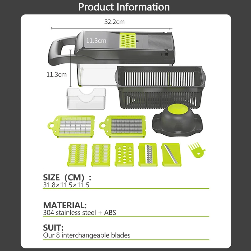 Овощерезка 8 в 1, лезвия из нержавеющей стали для нарезки кубиков, слайсер, Овощечистка, терка для картофеля и моркови, кухонные аксессуары