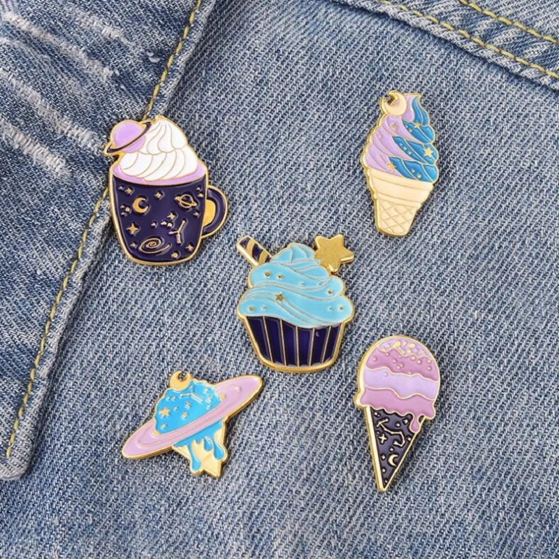Мультяшные милые эмалевые булавки с мороженым планета звезды чашка десерт торт конус брошь из сплава милая женщина ювелирные изделия подарок для ребенка