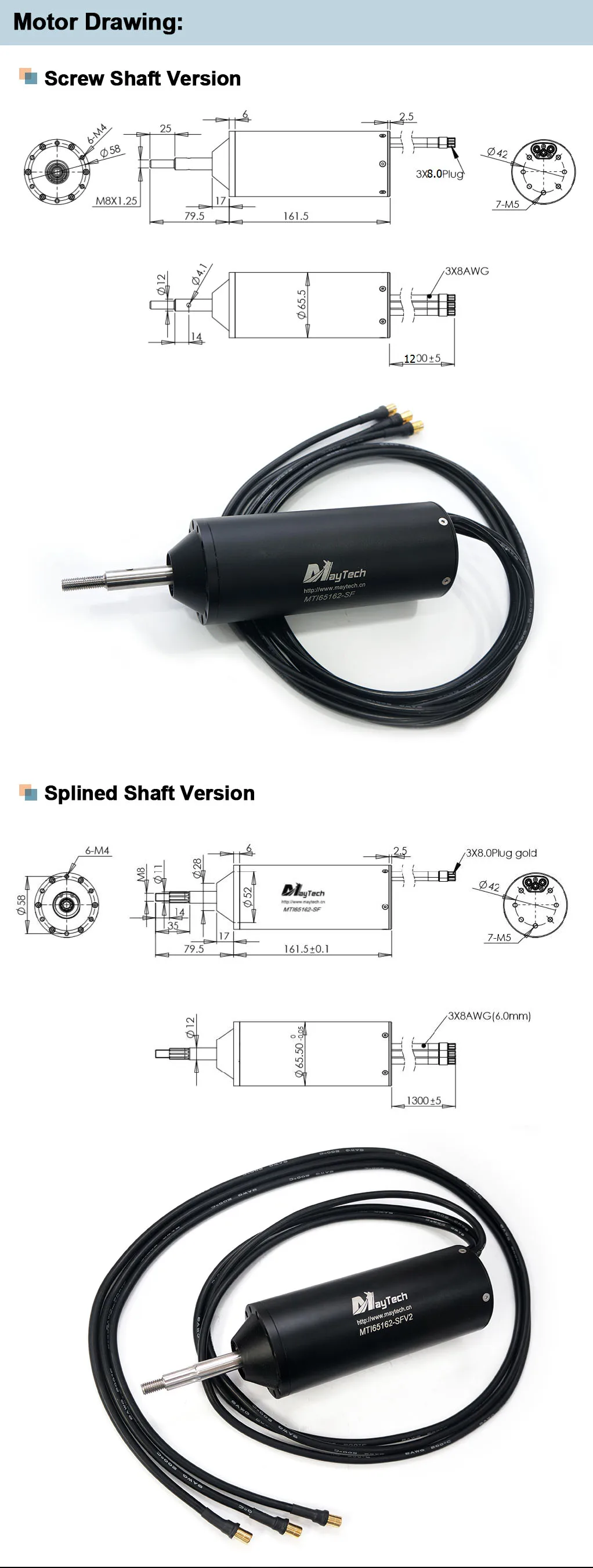 Обратите внимание: Мотор винта без пропеллера. Мотор со сплавным валом с пропеллером 7,25*6 дюймов.