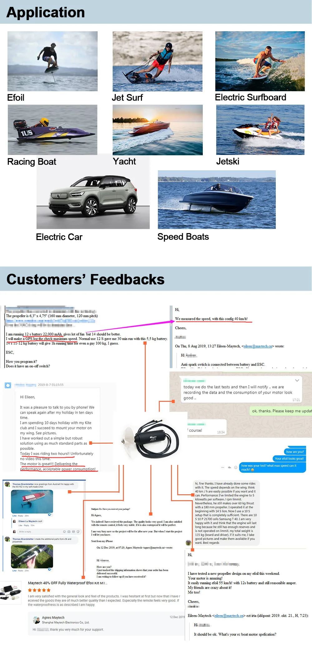 Применение: Efoil, гидрофольга, esurf, электрическая доска для серфинга, струйный СЕРФ и т. Д.