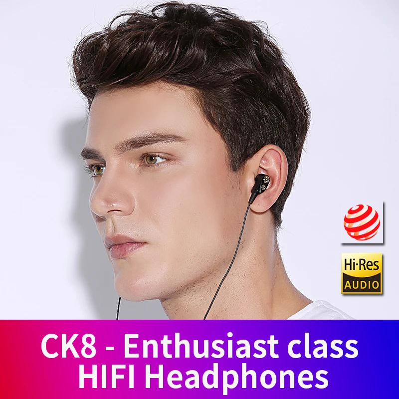 Оригинальные Внутриканальные наушники QKZ CK8 с двойным приводом четырехъядерные динамические наушники HiFi стерео гарнитура с микрофоном спортивные наушники для бега