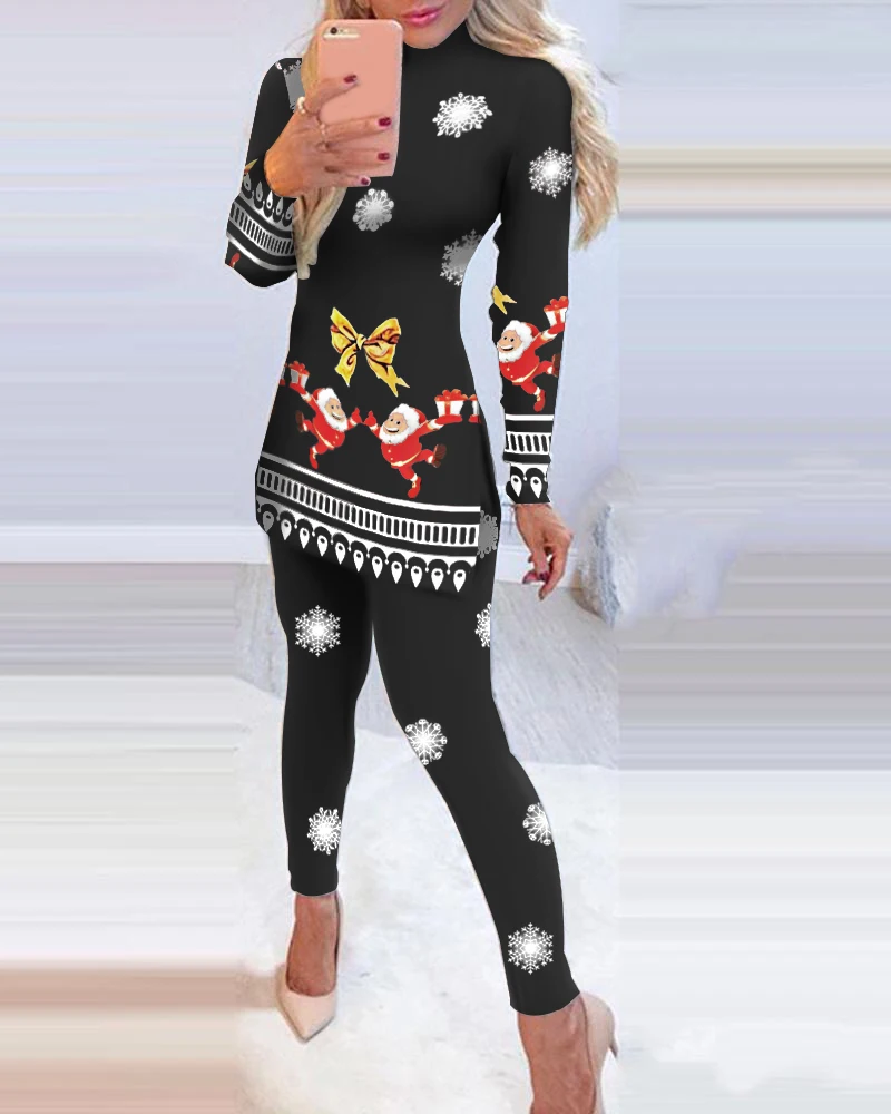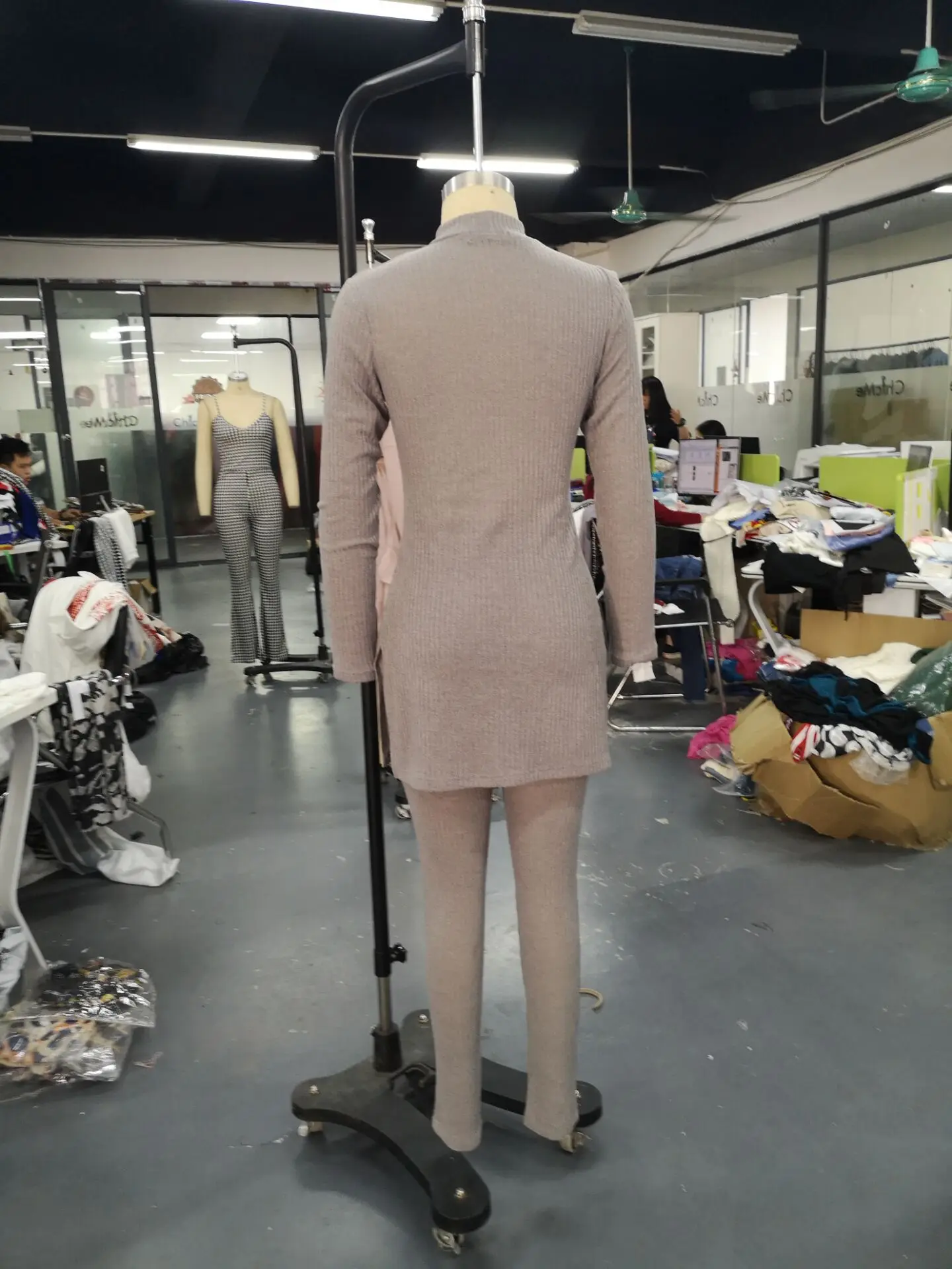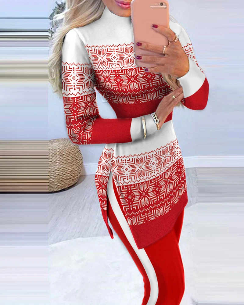 Женский зимний комплект из 2 предметов, теплый однотонный вязаный свитер в рубчик с длинным рукавом и разрезом, Длинный топ и вязаные брюки-карандаш с высокой талией