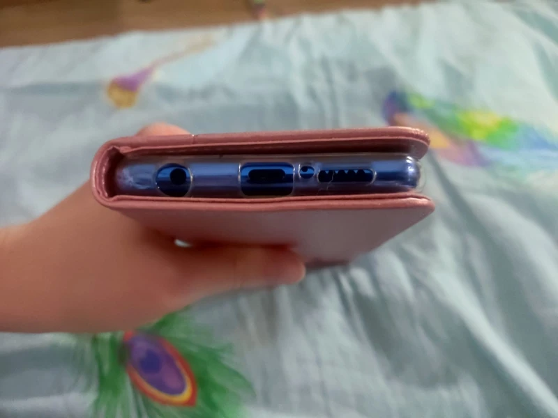 Товар пришёл быстро, но отверстия чехла не совсем точно совпадают с отверстиями на телефоне.Чехол не кожаный. Сам по себе чехол жестковат. Магнит слабенький. Цвет соответствует ожиданиям (по крайней мере розовый).