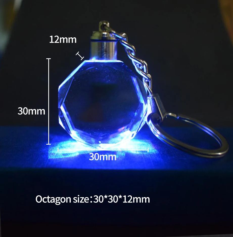 Название: хрустальная цепочка для ключейМатериал: Кристалл k9 + металлРазмер: 11,0 см * 3,0 смВосьмиугольник Размер: 3*3*1,2 смВес: 40 гСветодиодный цвет: яркий светильник (кнопка включения)Технология производства: лазерная внутренняя резьбаПосылка включает в себя: 1 брелок (посылка: коробка)