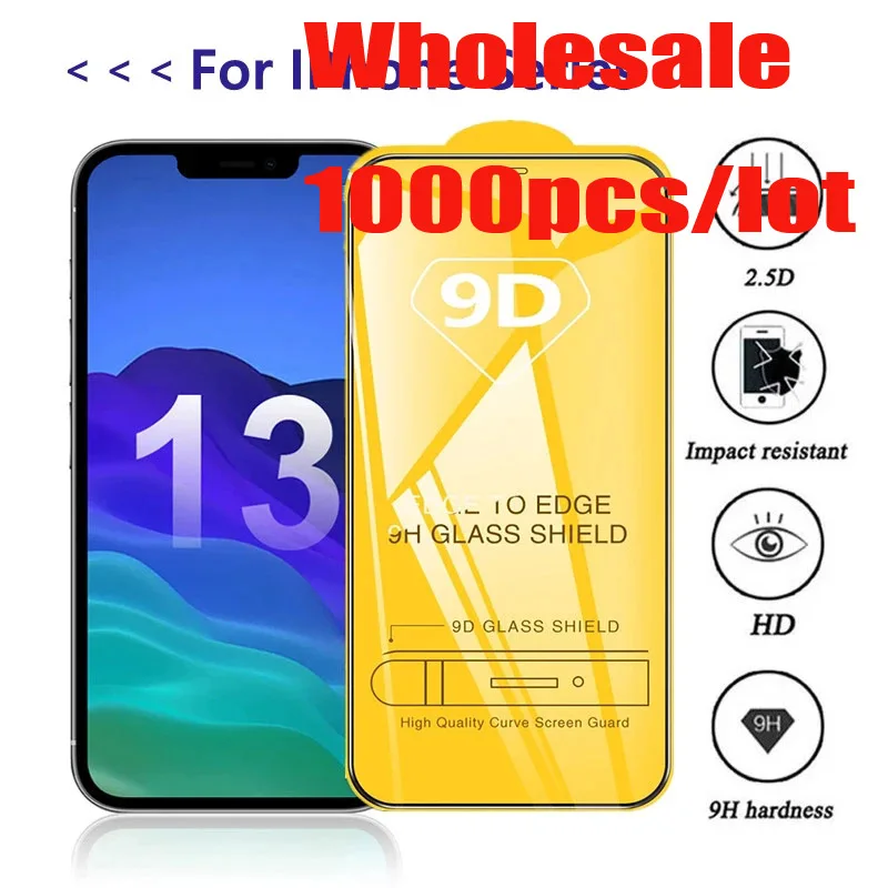 Закаленное стекло 9D с полным покрытием для IPhone 1000 шт.лот, стекло для iphone 13, 11 Pro Max, 13, mini, 12, стекло для IPhone 13pro, 11, 12 X, XR, XSmax, стекло