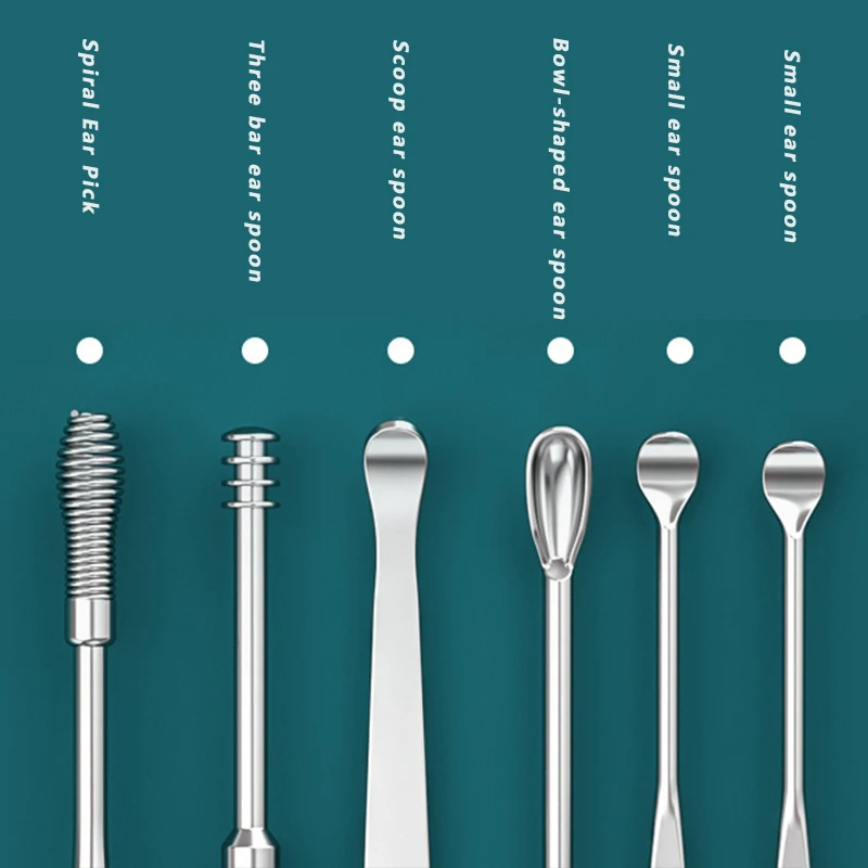 Набор для чистки ушей, 6 шт., стальная ухочистка, ложка, ухочистка,...
