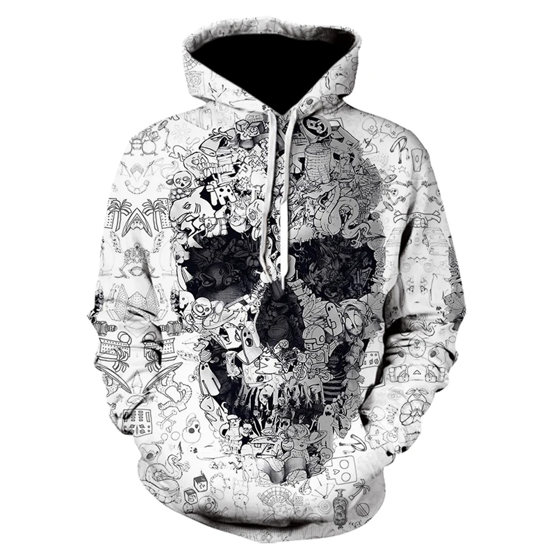 Мужская толстовка с капюшоном и 3D-принтом черепа, в стиле хип-хоп