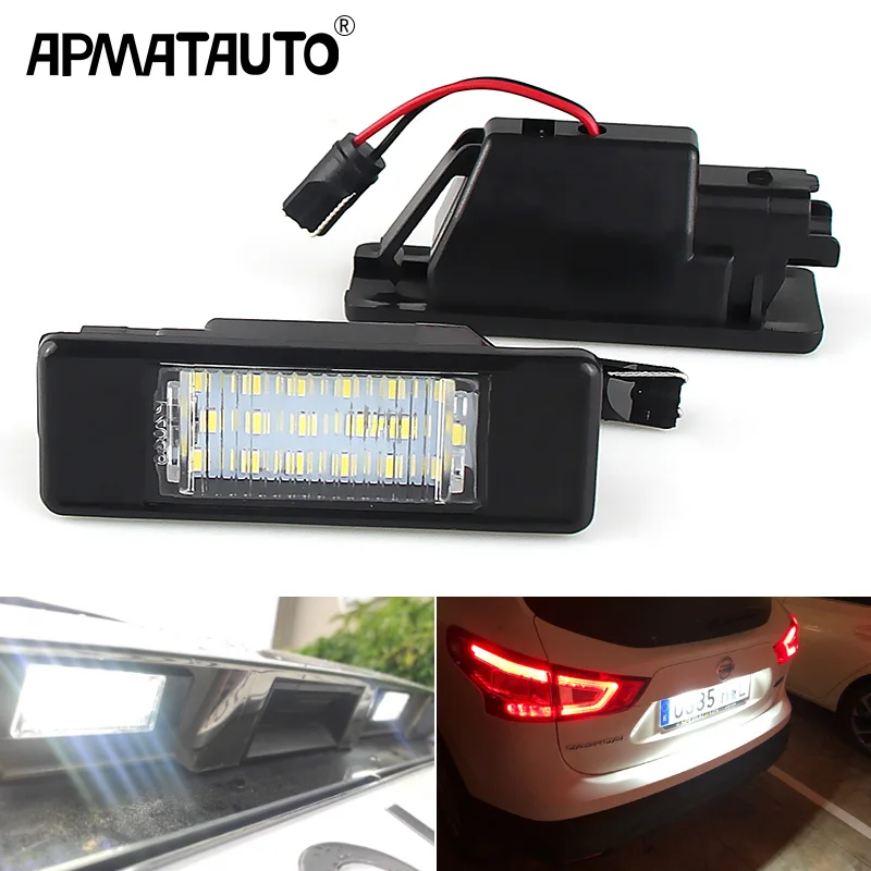 Белсветодиодный светодиодные лампы для номерного знака для Nissan X-Trail T30 T31 Qashqai J10 J11 Primera P12 Pathfinder R51 Juke F15, без ошибок, 2 шт.
