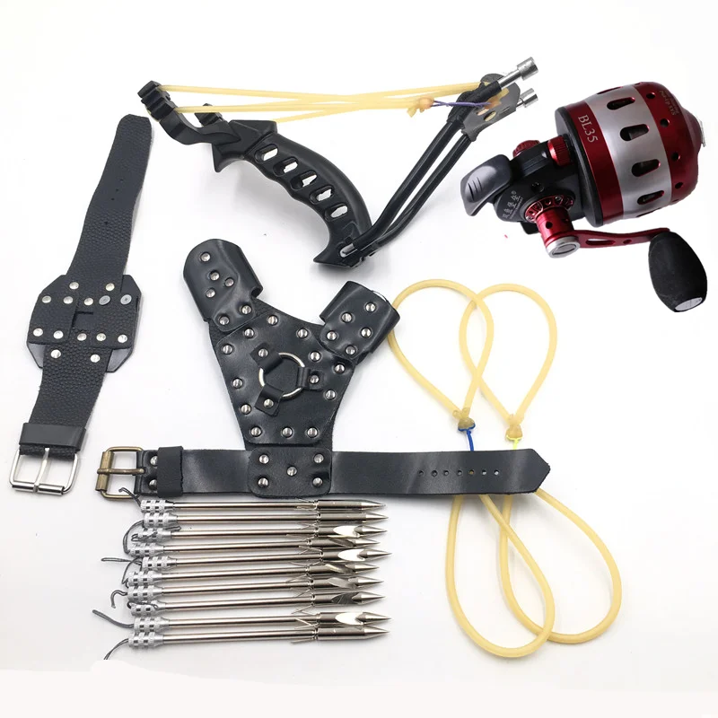 Посылка включает:1 * Рогатка,2 * резина,10 * стрела,1 * BL35 Рыболовная катушка,1 * кронштейн катушки,1 * Защита рук,