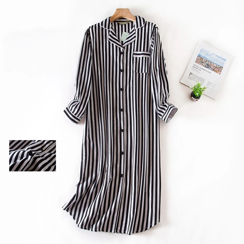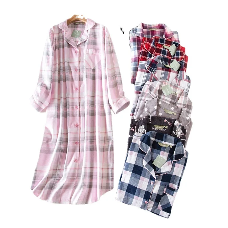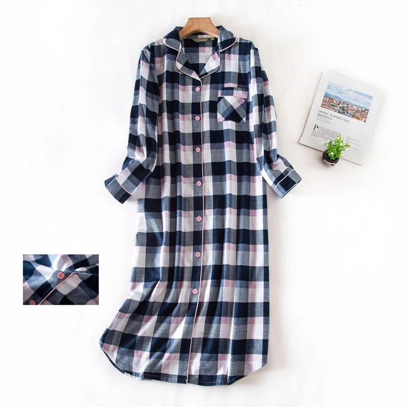 Женская ночная рубашка из 100% хлопка, фланелевая ночная рубашка с длинными рукавами и клетчатым принтом, женская одежда для сна, ночная рубашка на пуговицах