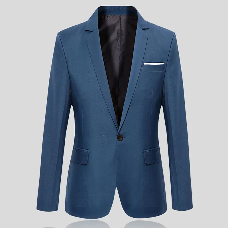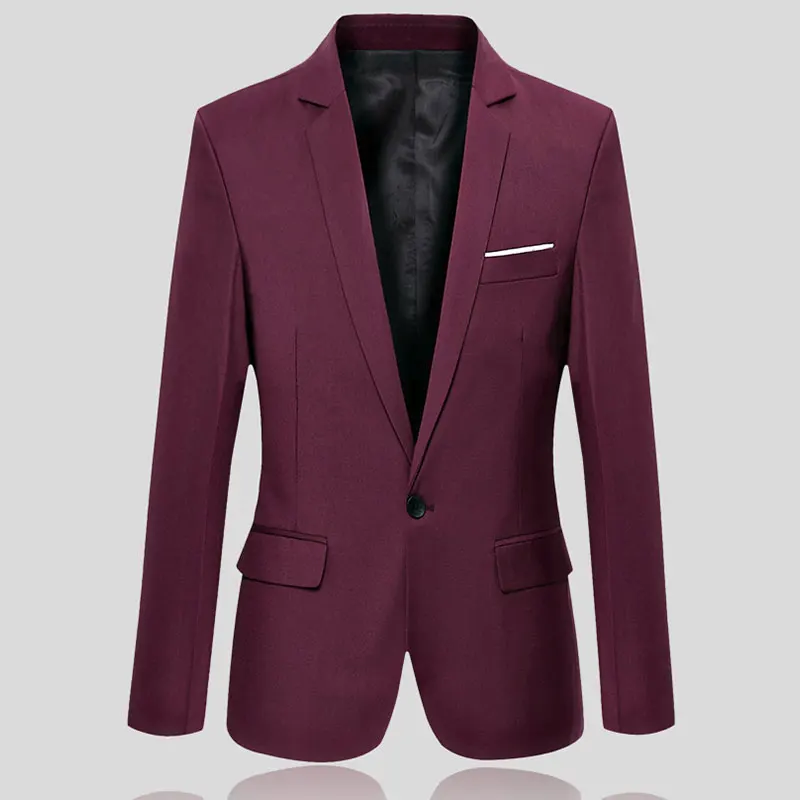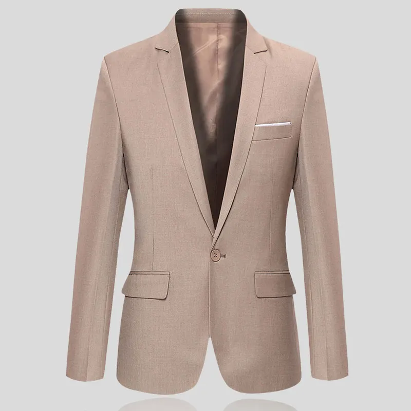 Пиджак мужской на одной пуговице, деловой однотонный деловой Топ, пальто, модная повседневная приталенная куртка с V-образным вырезом