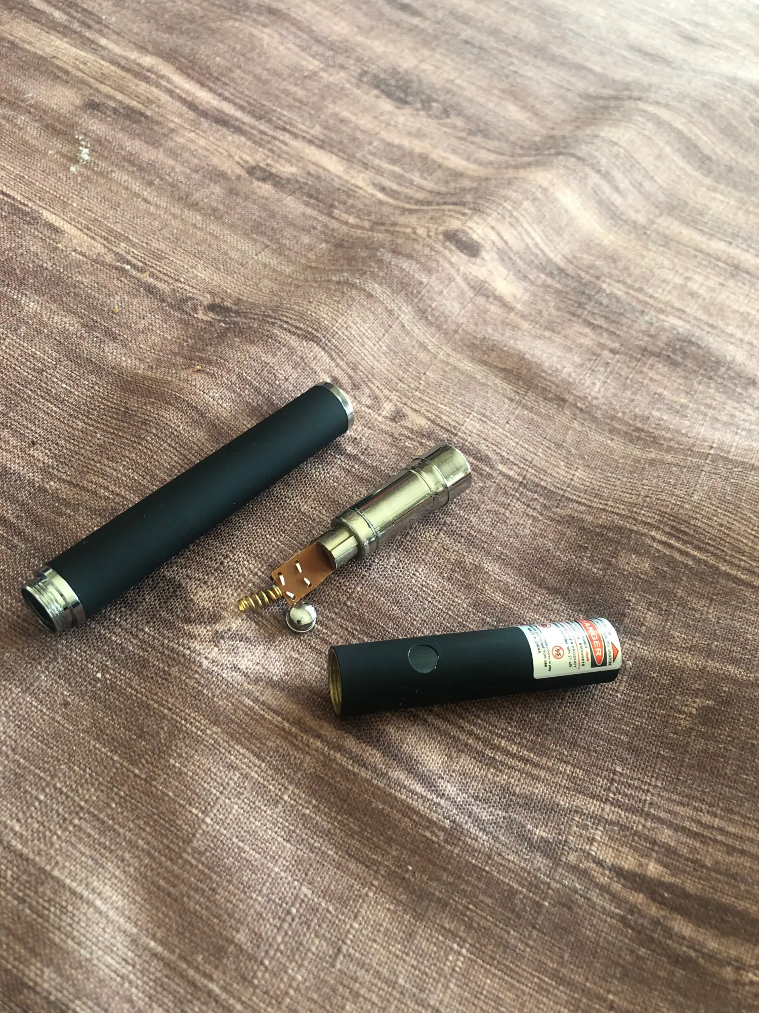 Указатель desencanta легко и части выпускаются, придется. Лазер не является мощным, как описано, но имеет хороший луч света