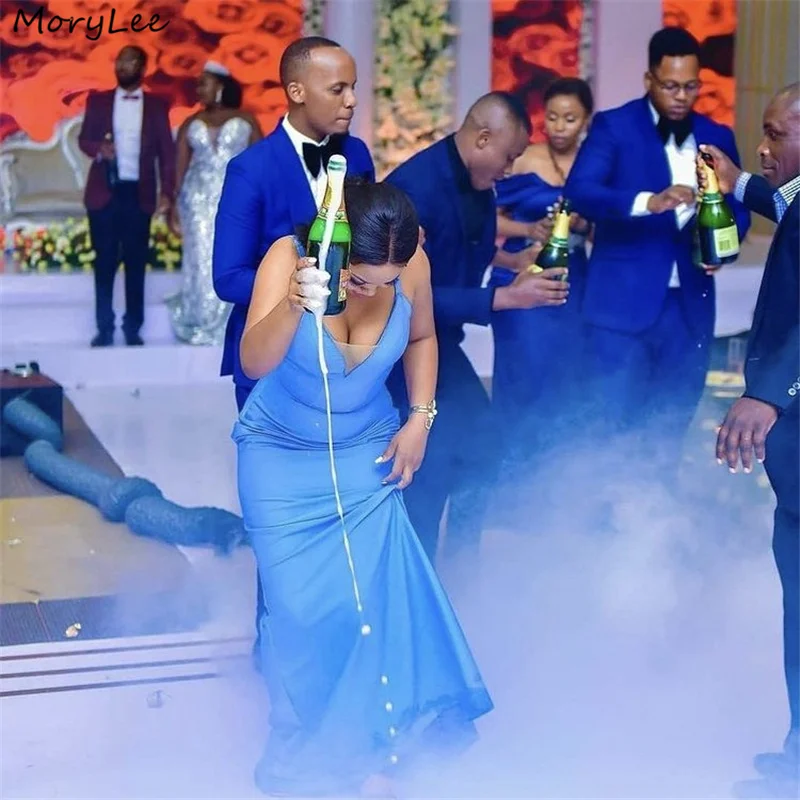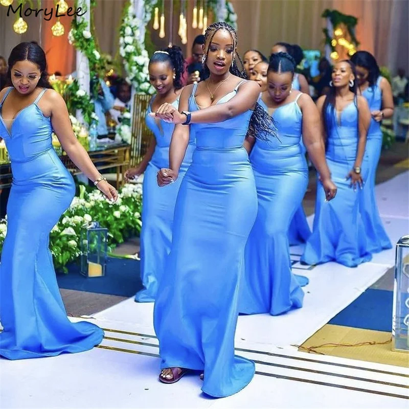 Синие платья для подружек невесты с V-образным вырезом, платья подружек невесты на молнии сзади, длина в пол, Свадебная вечеринка, платье для подружки невесты