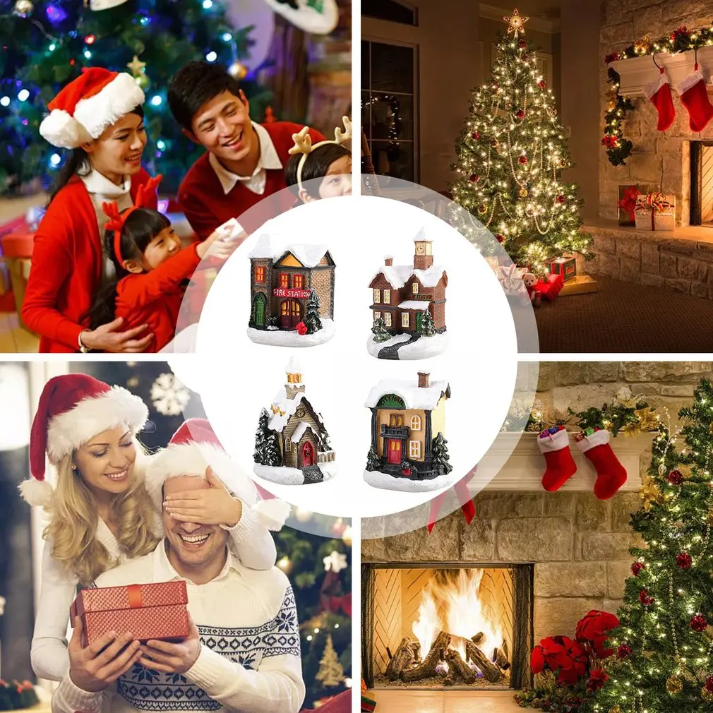 Рождественские украшения маленький дом микро пейзаж Рождественская деревенская сцена орнамент Рождественское украшение светящийся дом из смолы