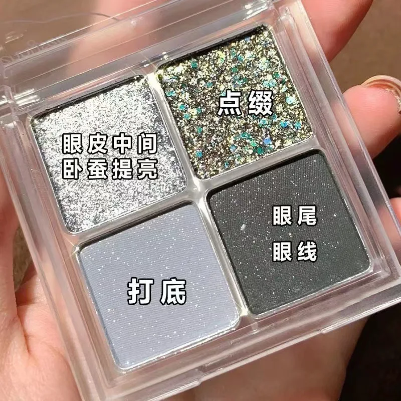 Палитра теней для век в стиле панк Smokey, Акриловые Матовые блестящие тени для век, мерцающие и сияющие, нюдовый пигмент для век, 4 цвета