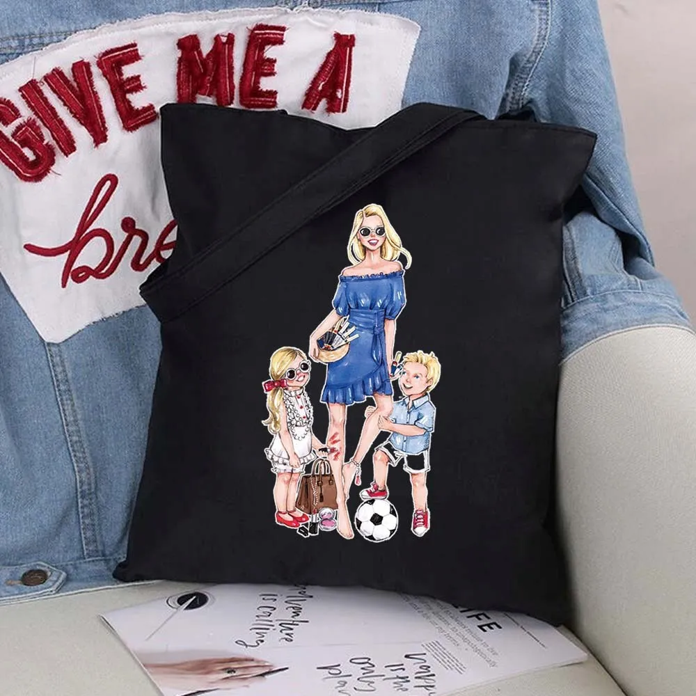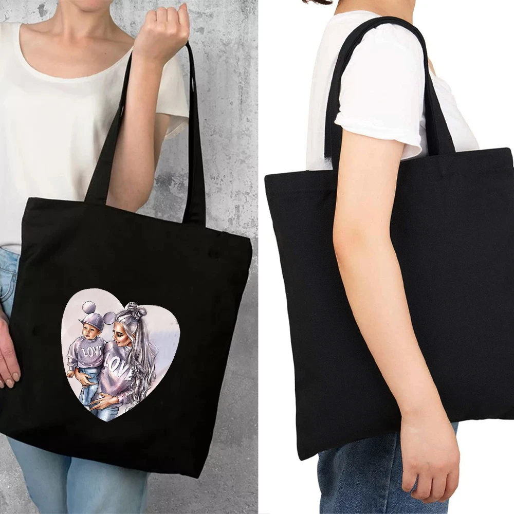 Женская сумка-шоппер, модная черная Складная Сумка-тоут с мультяшным рисунком