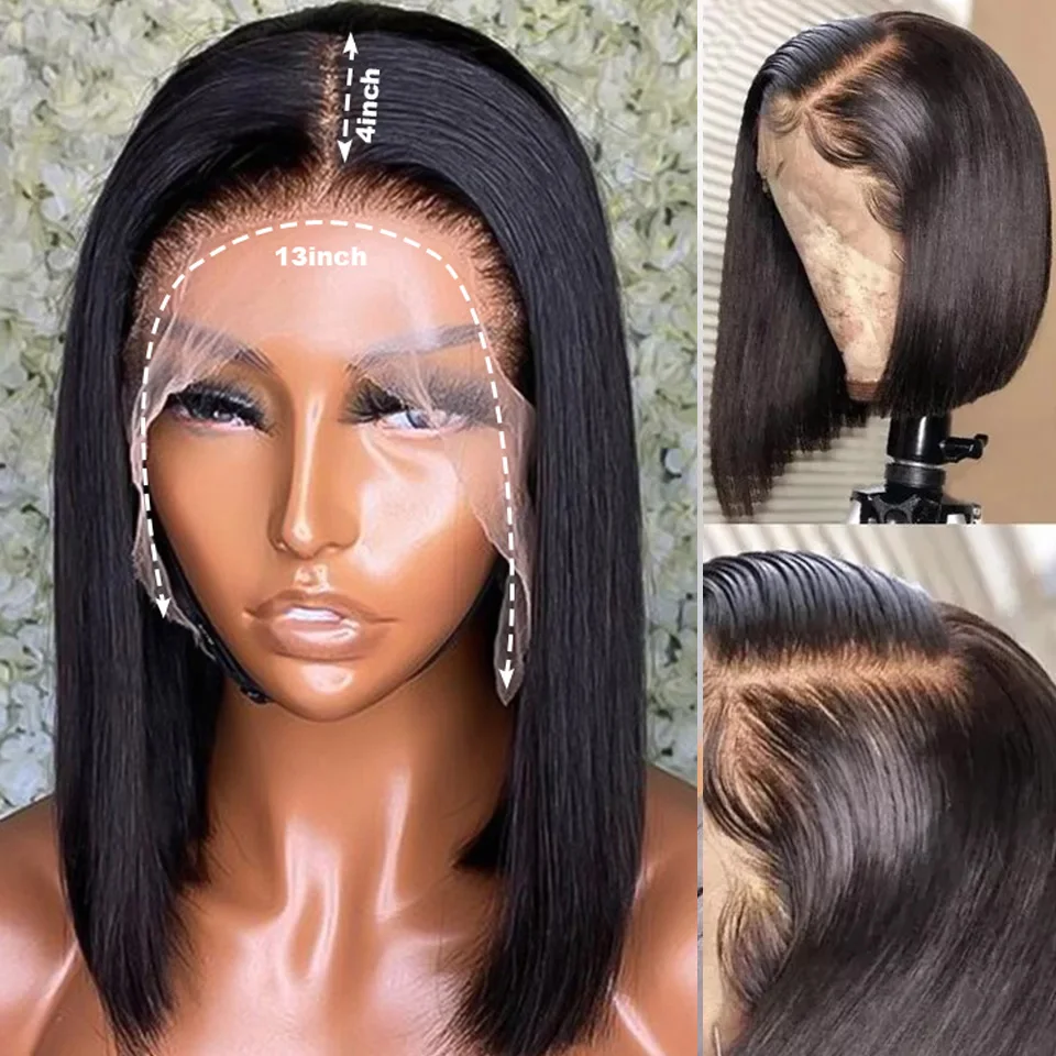 Парик Короткий Боб, прямые парики из человеческих волос 13x1 T, парики для черных женщин, предварительно выщипанный прозрачный парик, бразильские парики на сетке