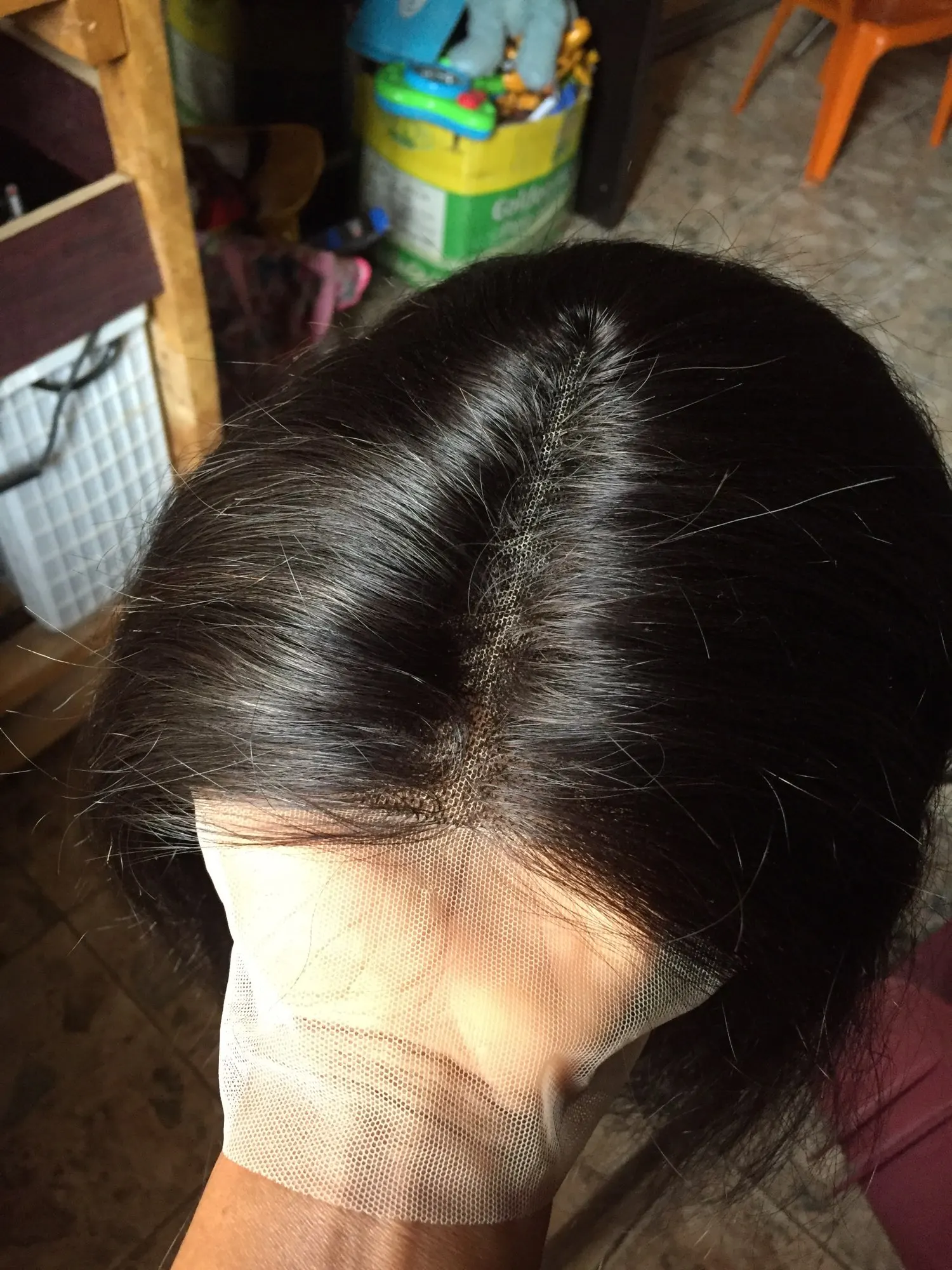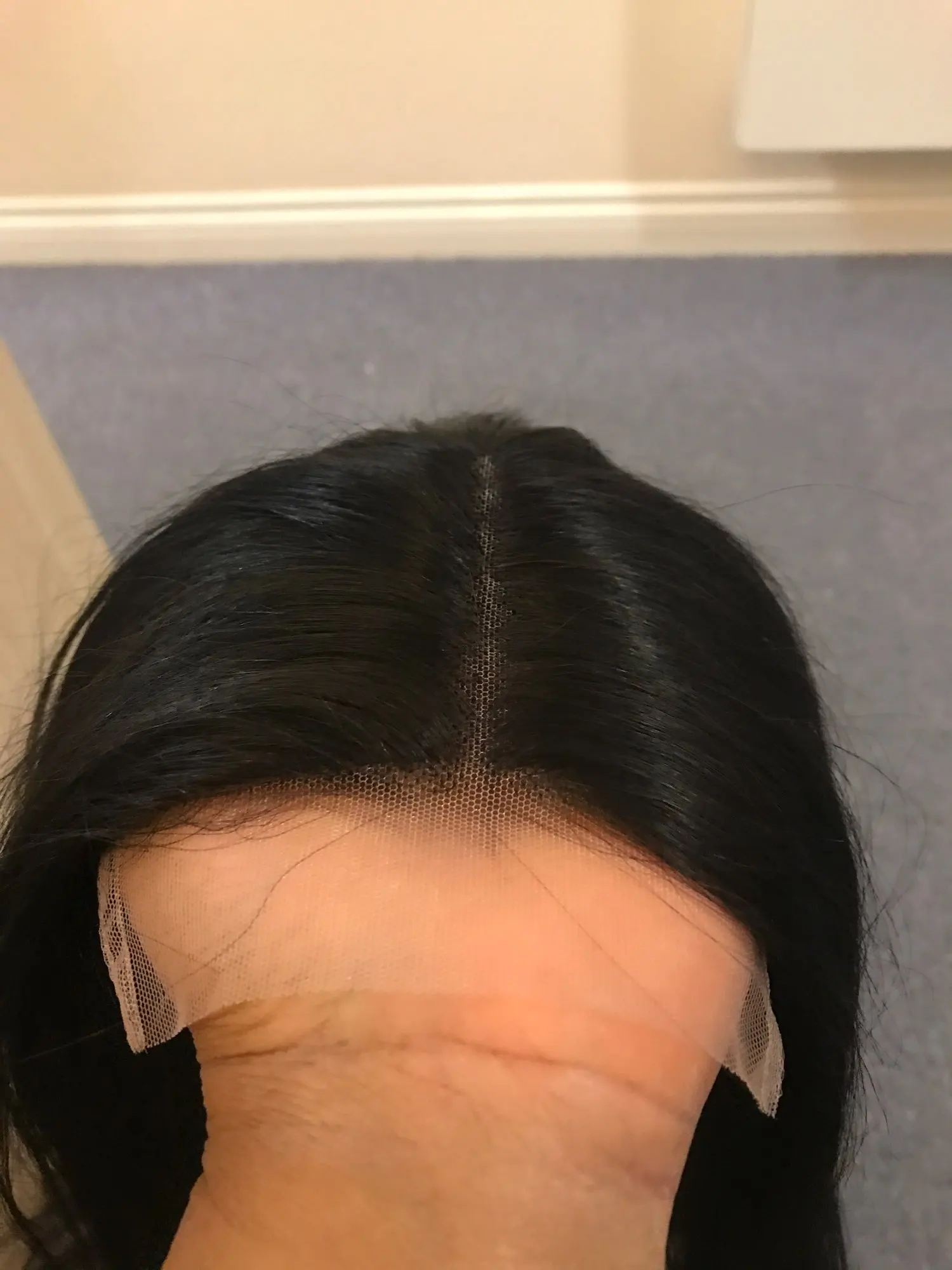 Длина волос реальна. Нет специфического запаха. Волосы естественно блестят. Конец парика полный. Кружево очень хорошо сидит на моей коже.