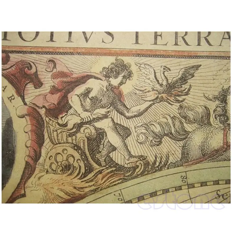 Винтажная ретро-карта мира в виде старого глобуса, 71x50 см, матовый коричневый бумажный плакат, домашний декор
