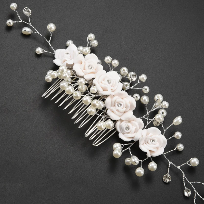 Свадебный головной убор, жемчужный обруч для волос, белый цветок, обруч ручной работы, расческа для волос невесты, украшение для волос, расческа для волос