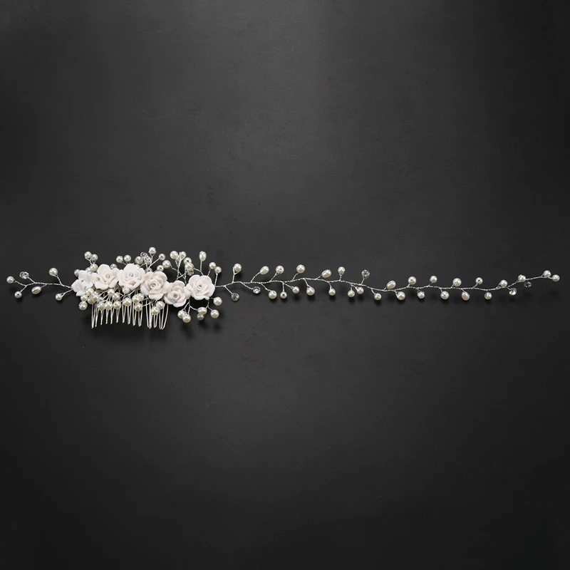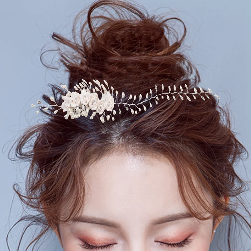 Свадебный головной убор Жемчужная Повязка для волос белый цветок женская заколка для невесты ювелирные изделия для волос гребень для волос